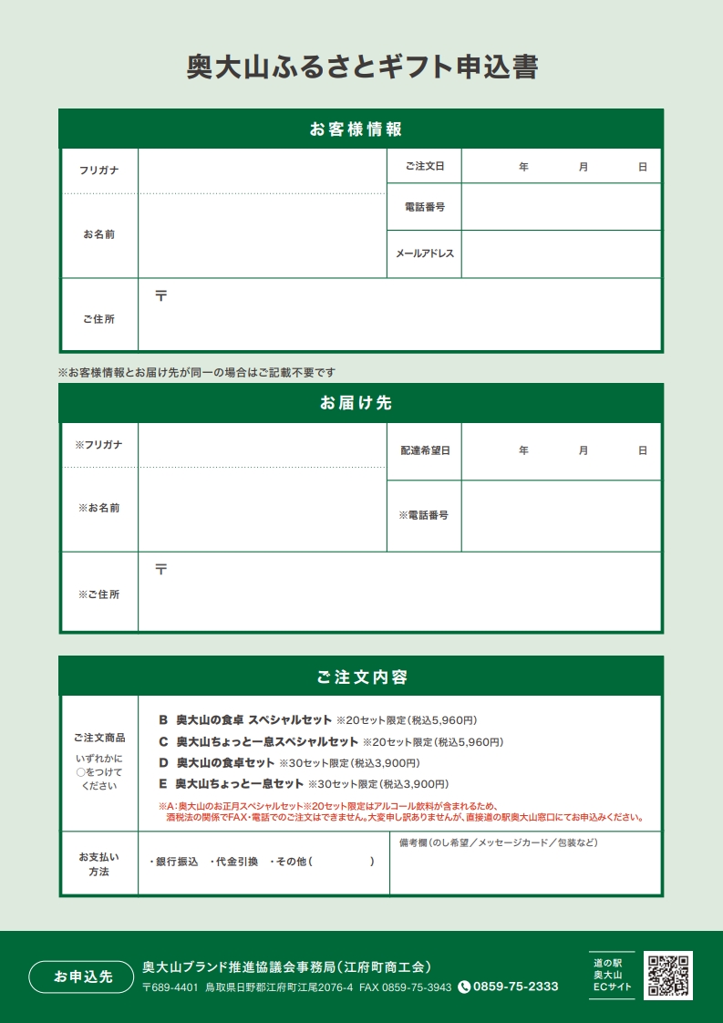 歳末限定でセットアップ、道の駅奥大山を窓口に11月10日(月)より販売受付開始します。